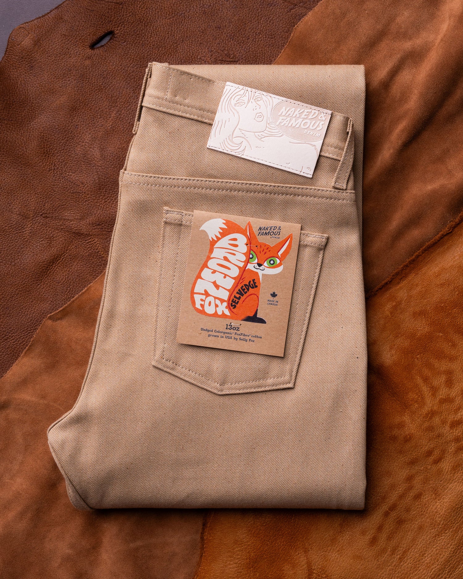 The Brown Fox Selvedge is made entirely from 100% organically grown FoxFibre® cotton—naturally brown, unbleached, and completely undyed. The color you see in the fabric? That’s the color of the cotton plant itself.