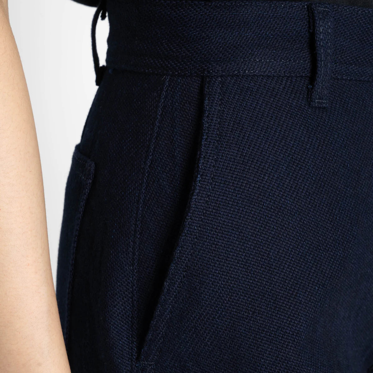The Maekake Dobby is a 12.2oz Japanese dobby fabric inspired by traditional maekake aprons worn by sake merchants and laborers. Historically, these aprons were woven densely to protect against sharp tools, heat, and heavy use.