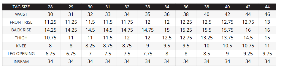 The Weird Guy is a standard tapered fit with a medium rise, a comfortable top block, and a taper from knee to hem.